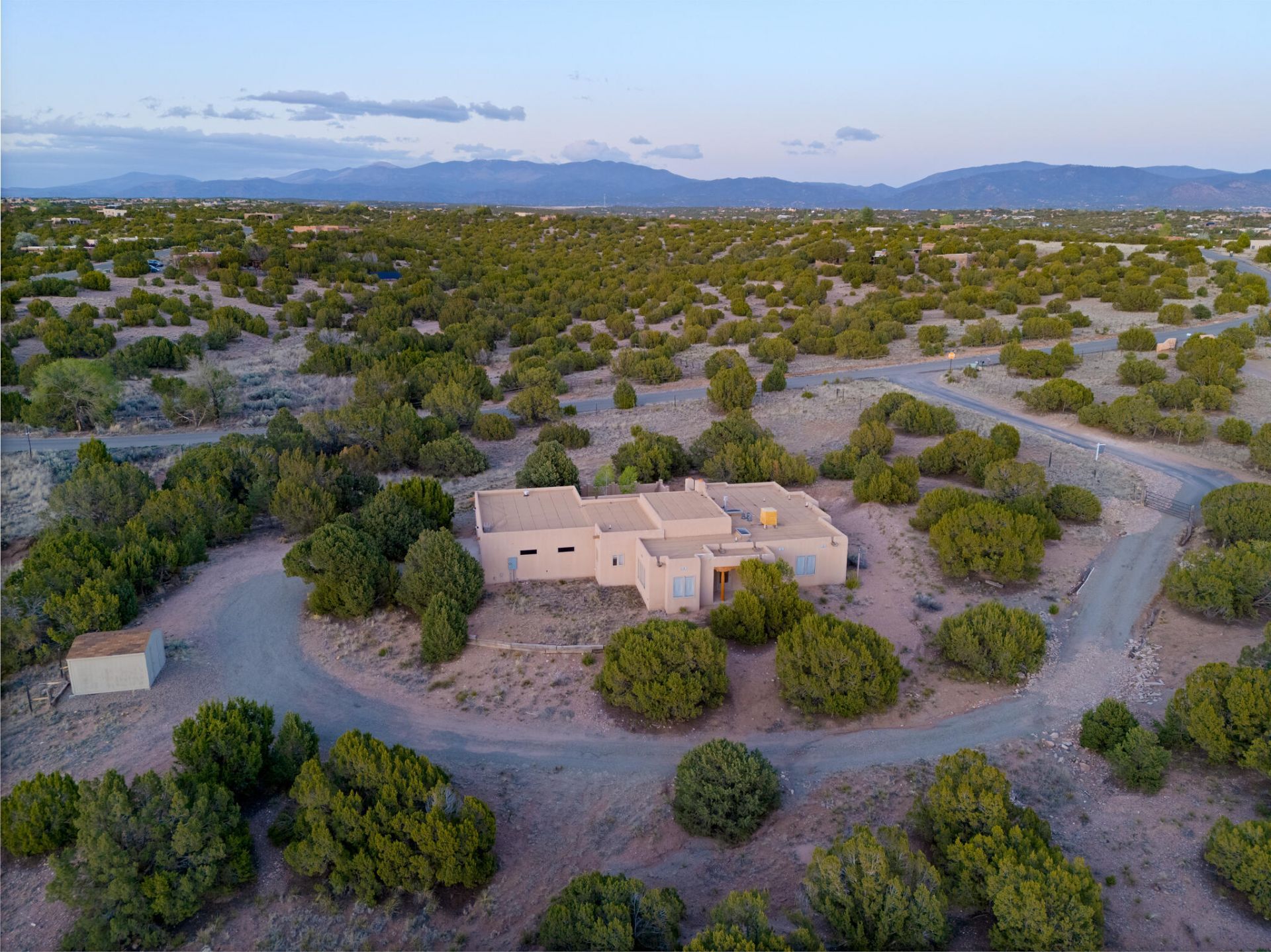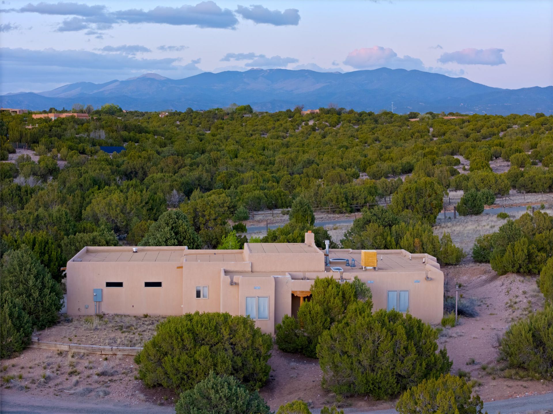 Price Improvement + $10k Flex Cash!! Nestled on nearly 3 peaceful acres in the tranquil Puesta Del Sol community that embodies the soul of Santa Fe living. Open skies, timeless craftsmanship, and quiet comfort surrounded by nature. Just minutes from the Santa Fe Airport with easy access to Highway 599, this property offers both convenience and serenity. Built in 2000, this 3-bedroom, 2-bath home welcomes you with radiant heat, Pergo and tile floors, and rich pine details throughout, including vigas and tongue-and-groove ceilings that soar up to 18. The space is filled with natural light from large windows, creating an inviting, airy feel. Enjoy three fireplaces in the main living area, primary bedroom, and covered back patio. Perfect for a cozy winter night or peaceful summer evenings.